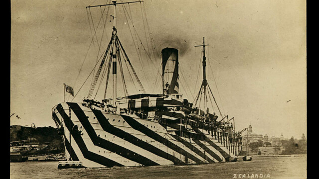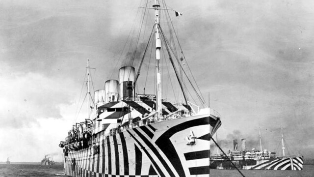 Also known as “razzle dazzle” or “dazzle painting,” the complex patterns were primarily used by the United States and the UK during World War I and World War II on naval vessels. The exact origins of the pattern are somewhat up for debate – with a zoologist, a marine artist, and even Picasso and the Cubist artists all laying claim to its ownership in various capacities. Artist Edward Wadsworth oversaw the painting of over 2,000 ships with Dazzle camouflage by the end of World War I. No two vessels were painted with the same dazzle pattern, further contributing to the uniqueness of the design.